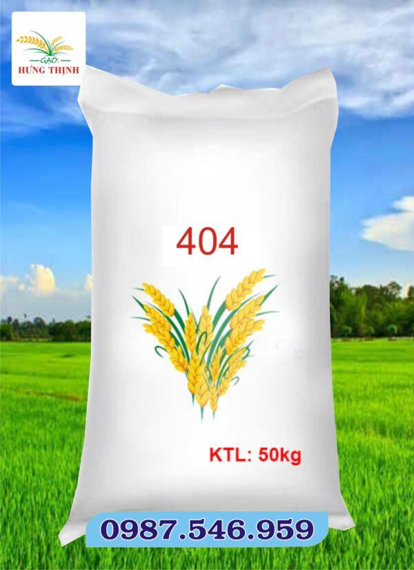 Gạo 404 được tạo ra từ giống lúa ngắn ngày, có thể trồng được ở nhiều kiểu đất khác nhau. Gạo có hạt màu trắng trong, to hơi tròn. Khi nấu cho cơm nở nhiều, xốp nhiều. Đây là loại gạo thích hợp nhất cho quán bán cơm chiên, bánh xèo, bánh cuốn…